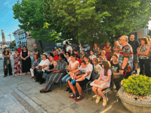 Ciò che ha affascinato molti è stato il metodo stesso: un processo creativo usato per far incontrare le persone, favorendo l’espressione di sé sia attraverso il dialogo che attraverso la comunicazione visiva. Il pubblico era variegato: dai semplici curiosi, attratti magari per caso dalla sagra paesana in corso, ai familiari delle partecipanti, fino a operatori del sociale e artisti locali. In molti si sono soffermati davanti al breve filmato esplicativo che illustrava le fasi del percorso, restituendo il senso profondo dell’esperienza vissuta.